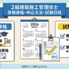 2級建築施工管理技士の第一次検定(前期)は例年6月に実施されます。3ヶ月プランなら3月から、6ヶ月プランなら12月からのスタートが目安です。後期試験(11月)を受ける場合は、それぞれ8月から・5月からとなります。