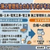 現場で10年以上の経験があっても「書き方」を知らないと落ちます。逆に、経験が浅くてもコツを押さえて書けば受かります。施工経験記述の対策は「施工経験記述の書き方【総論】」で詳しく解説しています。