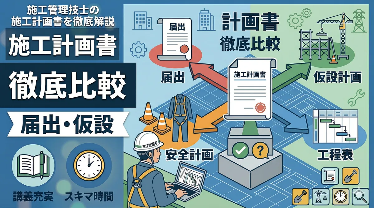 安全管理の次は法規の学習です。「建設業法」「建築基準法・労安法」で法規をマスターしましょう。「施工計画」「工程管理」「品質管理」と合わせて施工管理法を完成させてください。第二次検定の安全管理は「施工経験記述(安全管理)」「施工管理法の記述対策」で対策できます。