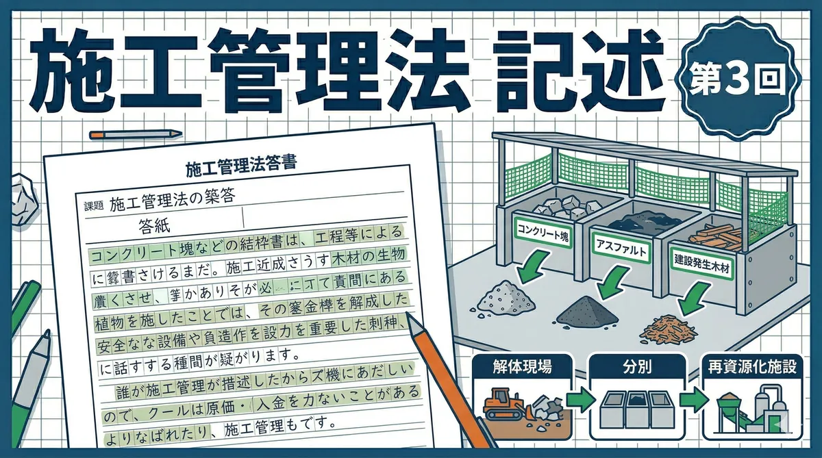 施工経験記述(安全管理)の解き方をしっかり押さえたい方は、解説記事も合わせてチェックしましょう。