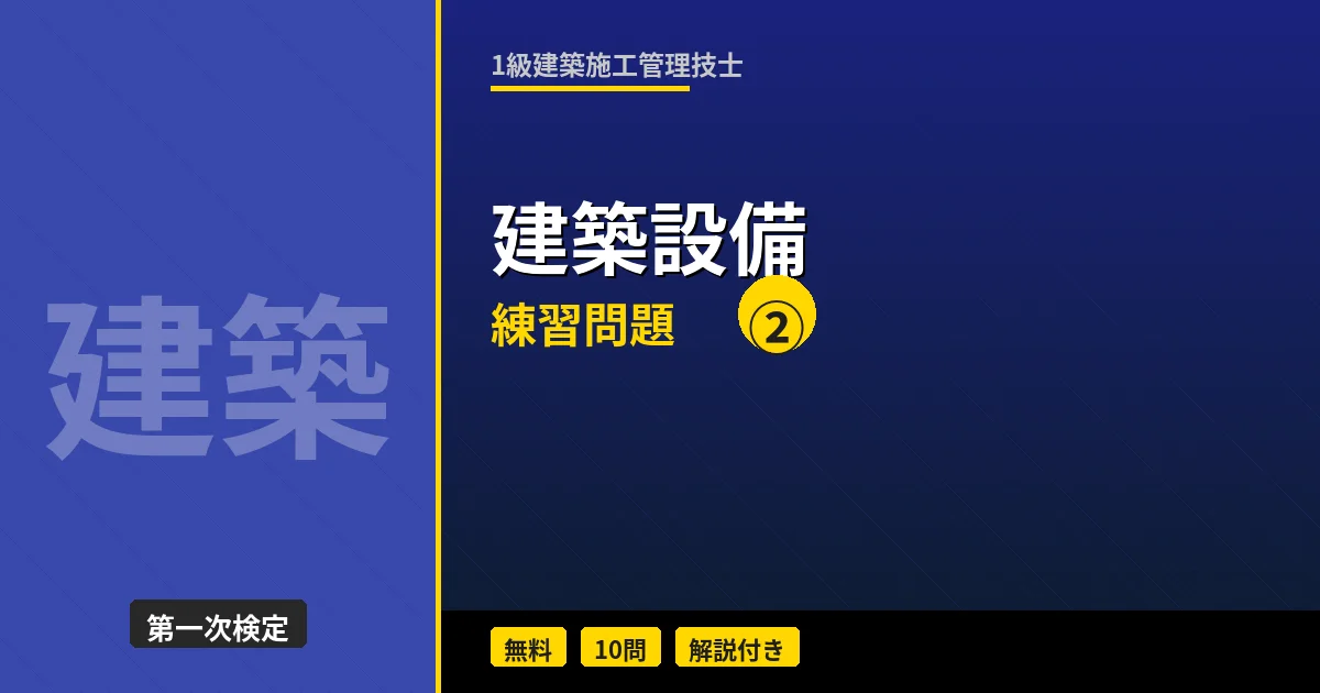 1級建築施工管理技士の「建築設備」分野から10問出題します(第3回・総仕上げ)。 8問以上正解を目指しましょう! 建築設備 ミニテスト 第3回 問1 漏電遮断器に関する記述として、正しいものはどれか。 (1)過電流のみを検知して回路を遮断する(2)地絡(漏電)を検知して回路を遮断する(3)電圧の変動を検知して回路を遮断する(4)断路器と同じ機能を持つ 解答を見る 正解:(2)漏電遮断器(ELB)は地絡(漏電)電流を検知して回路を自動的に遮断し感電事故を防止する。工事現場の仮設電力にも設置が義務付けられてい ...