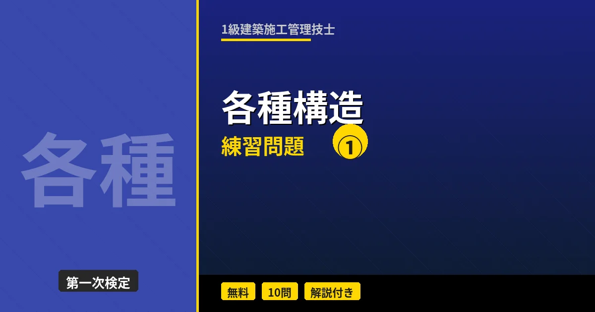 1級建築施工管理技士の「各種構造」分野から10問出題します(第2回)。木造・基礎構造・杭基礎を中心に出題しています。 1問ずつ「解答を見る」で正解と解説を確認できます。7問以上正解を目指しましょう! 各種構造 ミニテスト 第2回 問1 枠組壁工法(2×4工法)に関する記述として、正しいものはどれか。 (1)在来軸組工法に比べて間取りの自由度が高い(2)壁・床・屋根を面材で構成し荷重を面で受ける(3)大きな開口部を設けやすい(4)増改築が容易である 解答を見る 正解:(2)枠組壁工法は面(ダイアフラム)で荷 ...