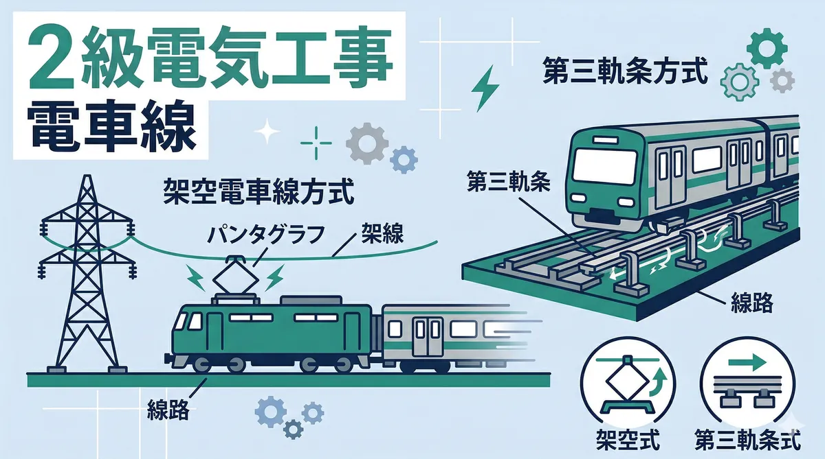 電車線(架空電車線・第三軌条方式)の要点(30秒でわかる) 架空電車線方式:パンタグラフで架線から集電。直流1,500V(在来線)、交流25,000V(新幹線) 第三軌条方式:レール横の給電レールから集電。地下鉄で多い(直流750V等) 帰線:レールが帰り道(帰線)→レールの電気抵抗を下げるためボンドを設置 出題傾向:電圧値(直流1,500V・交流25,000V等)と方式の特徴が頻出 結論から言います。電車線は鉄道に電気を供給する設備を学ぶ分野です。鉄道業界以外の人にはなじみが薄いため、選択問題で「捨てる ...