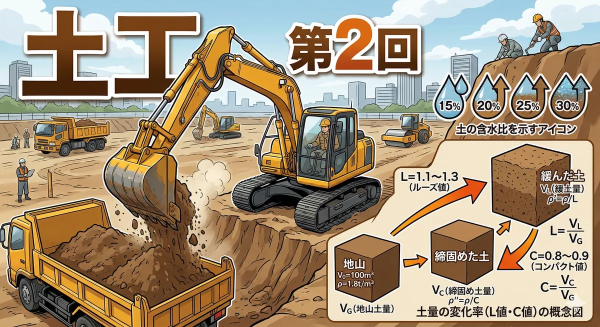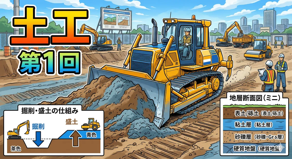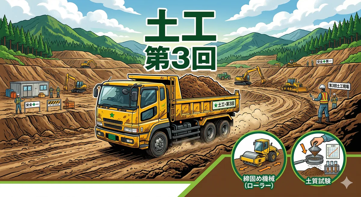 2級土木施工管理技士の第一次検定で出題される「建設機械」分野のミニテスト第1回です。 ブルドーザー・バックホウ・クレーン・締固め機械など、毎年出題される超頻出テーマから全10問を出題します。 各機械の「用途」と「特徴」をしっかり覚えているか、チェックしていきましょう! 項目 内容 出題分野 建設機械(掘削・運搬・締固め・クレーン) 問題数 10問(四肢択一) 目安時間 10〜15分 対応検定 第一次検定 問1 土工における建設機械と運搬距離の組合せのうち、適当でないものはどれか。 (1)ブルドーザー ―― ...