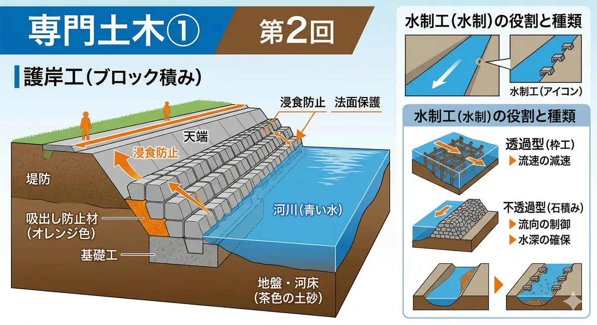 2級土木施工管理技士の第一次検定で出題される「施工管理法」分野のミニテスト第1回です。 施工計画・工程管理・品質管理・安全管理の必須4テーマから全10問を出題。合格に直結する最重要分野の実力をチェックしましょう! 項目内容出題分野施工管理法(施工計画・工程管理・品質管理・安全管理)問題数10問目安時間10〜15分対応検定第一次検定(必須問題) 施工管理法 ミニテスト(全10問) 問1 施工計画書の記載事項 施工計画書に記載する事項として、最も適当でないものはどれか。 (1)工事概要および施工方法(2)現場 ...