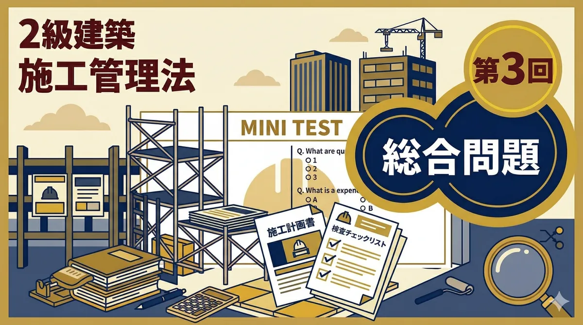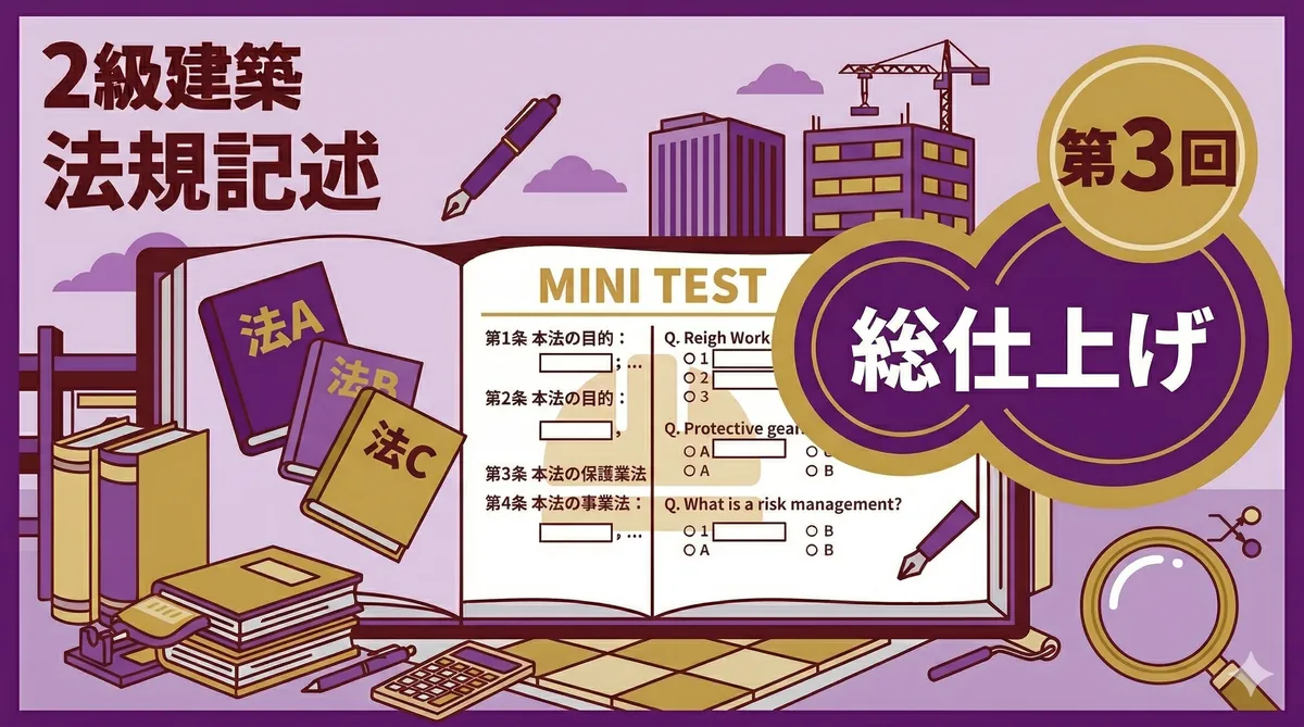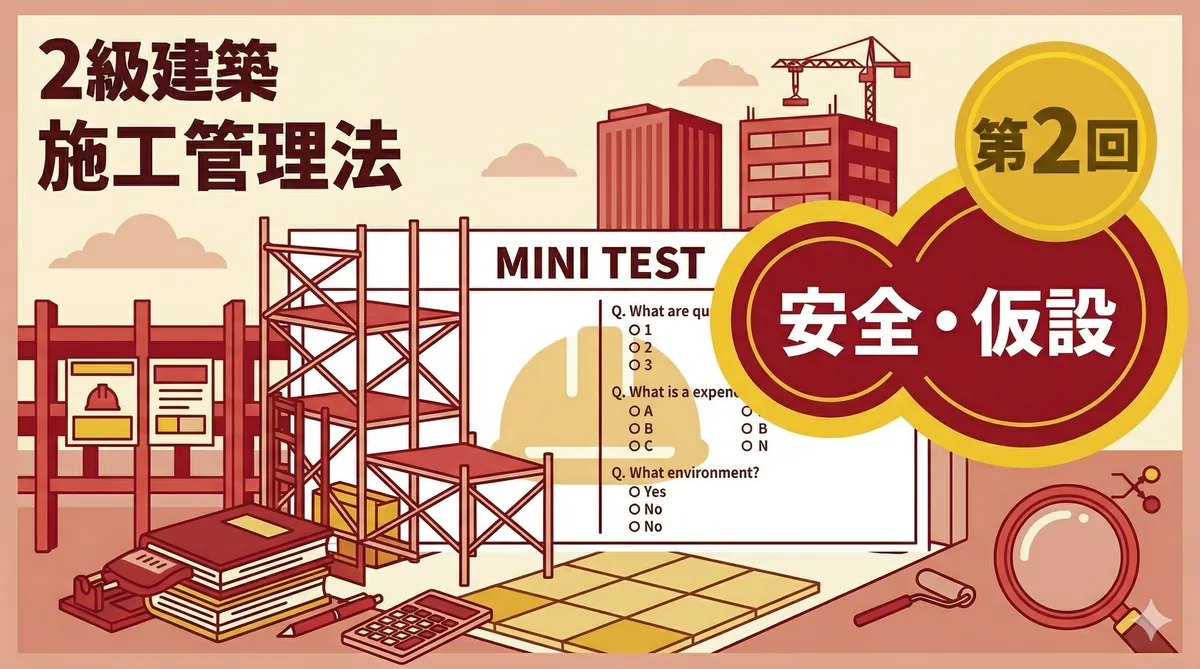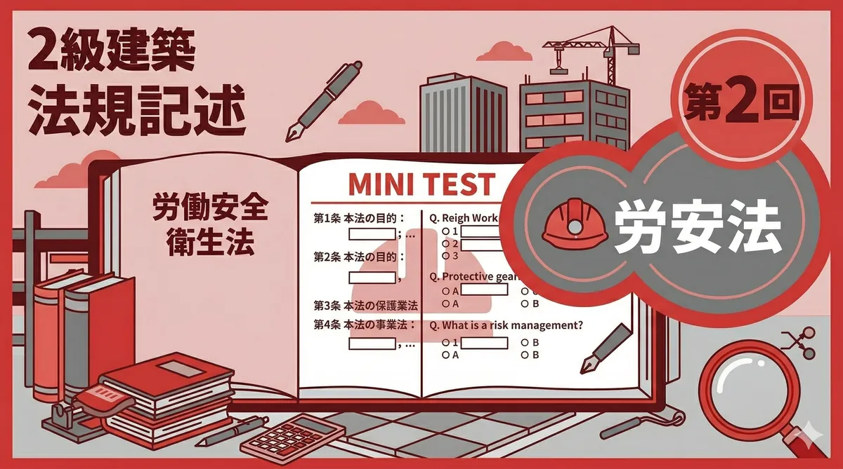 2級電気工事施工管理技士 法規 ミニテスト 第2回 第2回では電気事業法・電気工事士法・電気用品安全法を10問出題します。電気工事施工管理技士ならではの法規分野です。「法規②(電気事業法・電気工事士法・電気用品安全法)をわかりやすく解説」を参照しながら取り組みましょう。 テスト情報 形式:四肢択一(各問1つ選択) 問題数:10問 分野:法規(電気事業法・電気工事士法・電気用品安全法) 目標時間:15分 法規 ミニテスト(全10問) 問1 電気事業法の目的に関する記述として、最も適当なものはどれか。 (1) ...