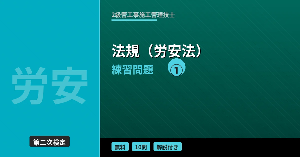 2級管工事施工管理技士 法規(労安法)ミニテスト 第1回 この第1回ミニテストでは、足場・高所作業の安全管理と酸素欠乏危険作業に関する記述問題を出題します。いずれも第二次検定の法規問題で頻出のテーマです。まだ学習していない方は、先に法規(労働安全衛生法)の記述対策|第二次検定③を読んでおくと効果的です。 テスト情報 形式:穴埋め・記述式(模範解答付き) 問題数:5問 分野:法規(労働安全衛生法・建設業法) 目標時間:20分 記述のポイント(おさらい) 条文のキーワードを正確に書く(「2m以上」「18%以上 ...