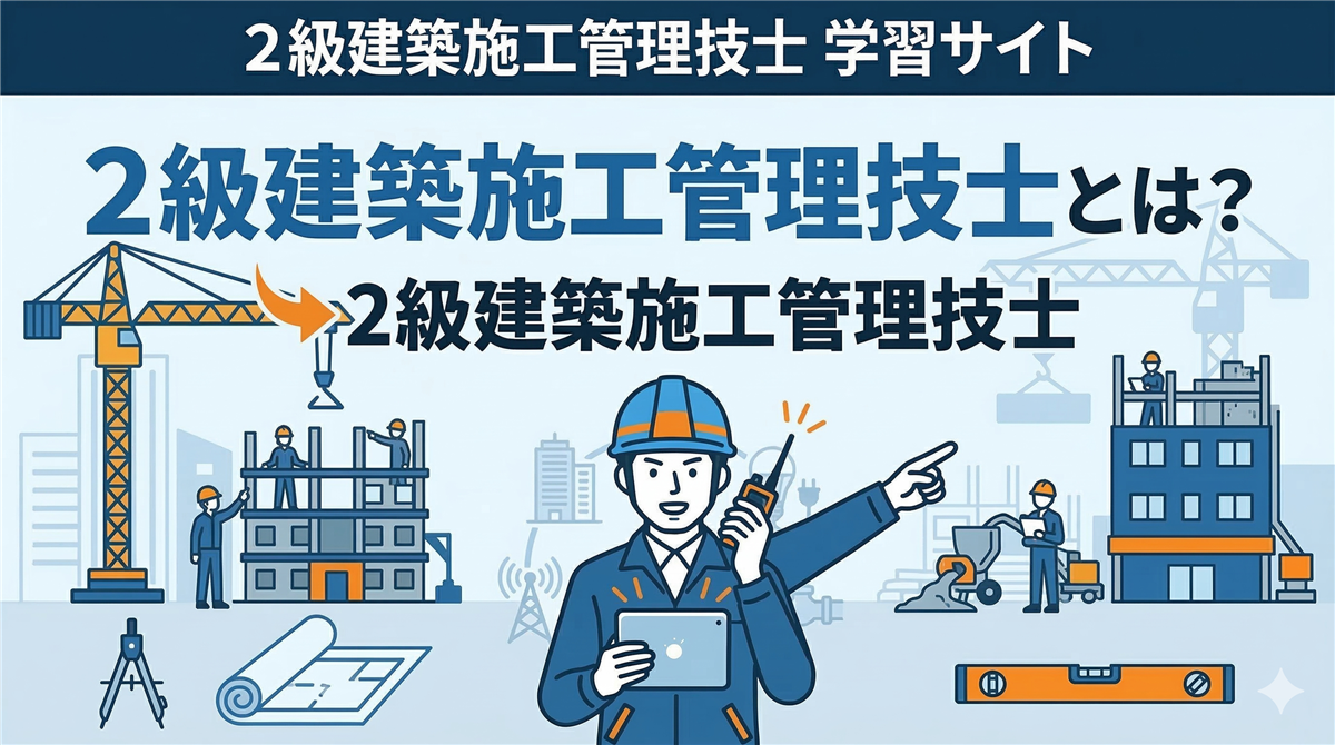 2級建築施工管理技士とは?(30秒でわかる要点) 建築工事の現場で「主任技術者」として施工管理ができる国家資格です。マンション・ビル・住宅などの建築工事15種類で主任技術者を務められます。 受験資格:第一次検定は17歳以上なら誰でも受験OK(実務経験不要) 試験形式:第一次検定(マークシート50問)+第二次検定(記述式) 合格率:第一次 約35〜45%、第二次 約25〜30% 合格基準:60%以上(50問中30問正解で合格) メリット:資格手当(月5,000〜20,000円)・転職に有利・経審加点で会社貢 ...